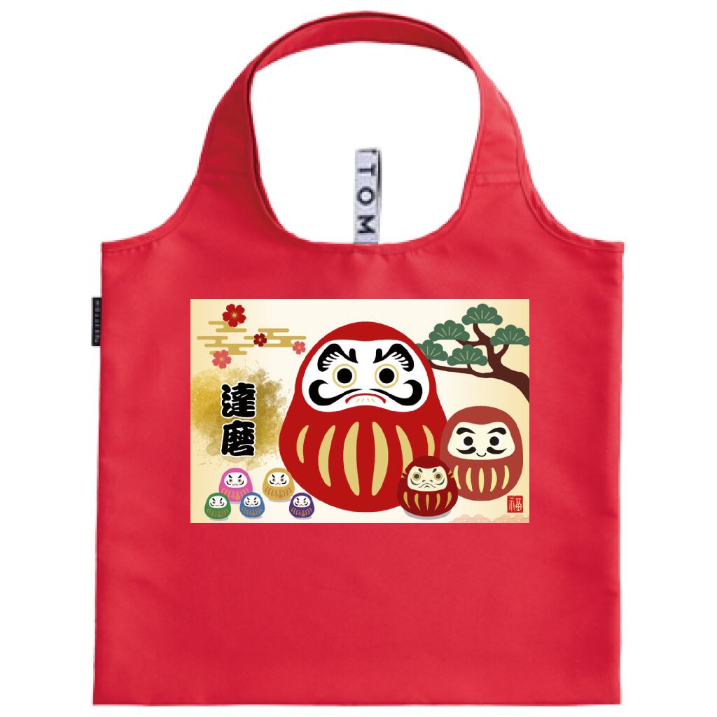 だるま柄がユニークなシンプルでおしゃれなフラットバックです。書店や文具店でのお買い物、資料を運ぶ時も折れずにきれいに持ち運ぶことができます。取っては肩掛けにもできる長さです。コンパクトに折り畳めるので鞄に入れて持ち運ぶのに便利です。耐久性の高いポリエステル素材で光沢感のあるつるっとした触り心地の生地です。(バッグ内側についているタグにたたみ方の記載があります。)